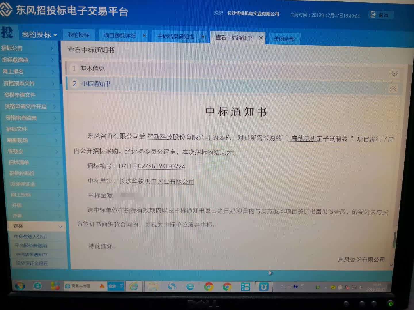 中標項目:新能源汽車(chē)扁線(xiàn)發(fā)卡電機定子自動(dòng)化生產(chǎn)產(chǎn)線(xiàn)項目:東風(fēng)汽車(chē)-----智新科技股份有限公司